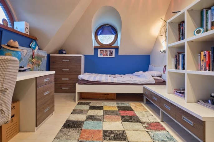 - duży, przestrzenny strych (dostępny z holu na poddaszu), wyposażony w regały do przechowywania,