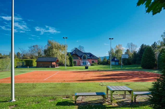 W CENIE SPRZEDAŻY NIERUCHOMOŚCI ZABUDOWANEJ BUDYNKIEM JEDNORODZINNYM UWZGLĘDNIONO 3-LETNIĄ DZIERŻAWĘ 23 AROWEJ DZIAŁKI ZABUDOWANEJ DOMKIEM GOSPODARCZYM ORAZ PRYWATNYM KORTEM TENISOWYM / BOISKIEM WIELOFUNKCYJNYM Z NIEZALEŻNYM WJAZDEM, W ZAMIAN ZA JEJ UTRZYMANIE W NIEZMIENIONYM STANIE.