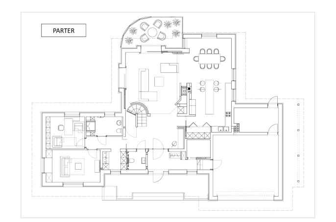 - altana grillowa wykończona kamieniem, elementami ze stali nierdzewnej; meble z drewna egzotycznego (teak); altana zasłaniana roletami z napędem elektrycznym,