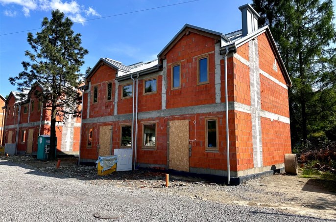 - Wykonane przyłącza do budynku gazu, wody, energii elektrycznej, kanalizacji.
